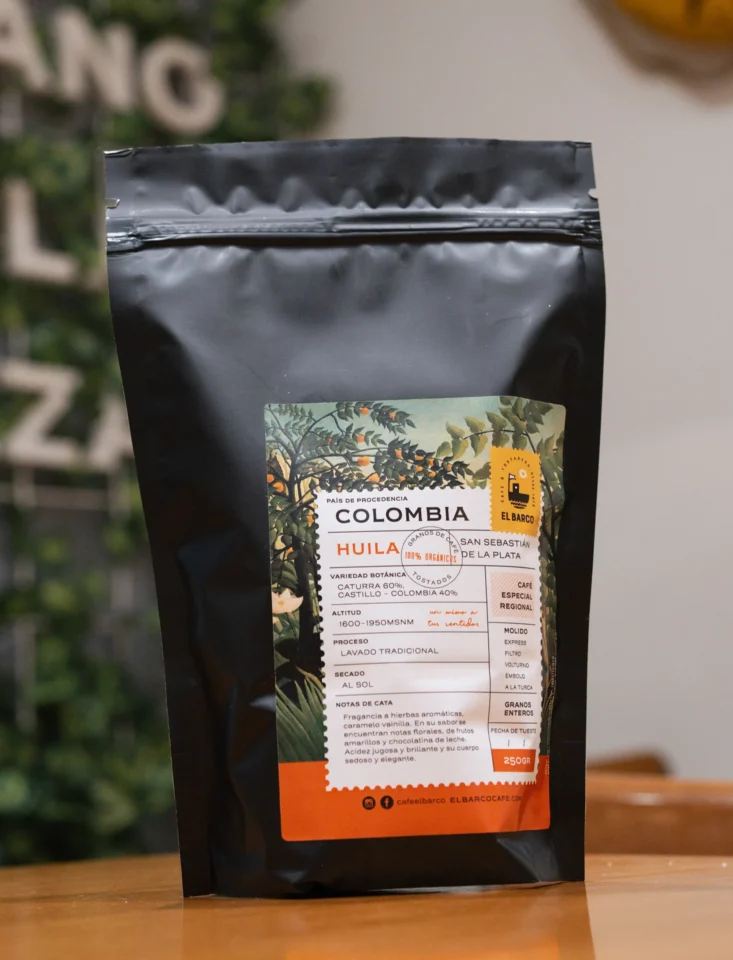 Café tostado, proceso lavado cultivado a una altitud entre 1600 y 1950 mts. (variedad botánica caturra, castillocolombia). En su sabor se encuentran notas florales, de frutos amarillos y chocolatina de leche, su acidez es jugosa y brillante y su cuerpo sedoso y elegante.