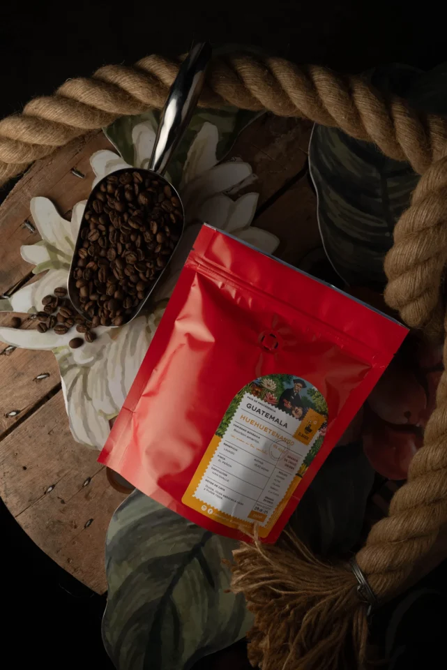 Café tostado de la región de Huehuetenango Waykan, cultivado a una altitud de 1400 a 2200 msnm, el grano se obtiene por el proceso lavado y secado al sol.