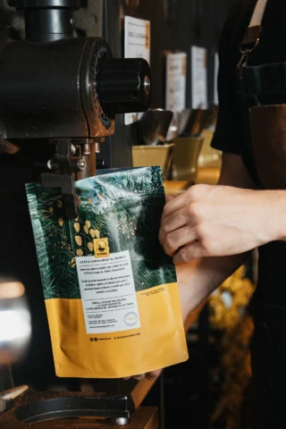 BrasilCafe tostado varietal catuai, cultivado a una altitud de 1100 y 1400 metros sobre el nivel del mar, su método de proceso es honey secado al sol. En sus notas de cata se destacan las frutas tropicales, dulces, nuez moscada y naranja.